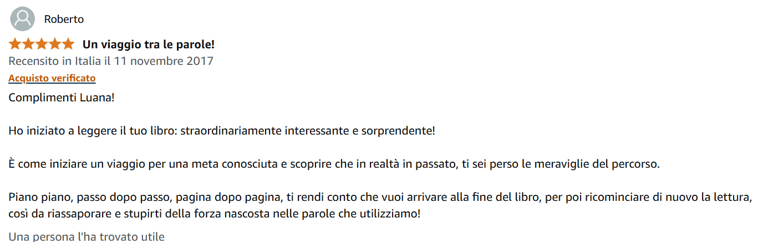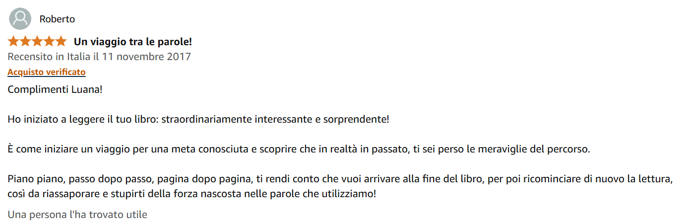“Pagina dopo pagina, ti rendi conto che vuoi arrivare alla fine del libro, per poi ricominciare di nuovo la lettura, così da riassaporare e stupirti della forza nascosta nelle parole che utilizziamo!”